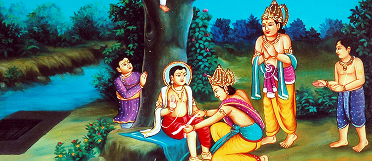Hours passed but Ghanshyam could not be seen. Ghanshyam’s friends began to search for Ghanshyam. Every nook and corner of all the temples of the village was searched. The distant search on the river-bank was conducted. But alas! Ghanshyam was not found any where. There was no limit to the elder brother’s sorrow. He wept and wailed: “O Ghanshyam, come back. I promise never to scold you.”