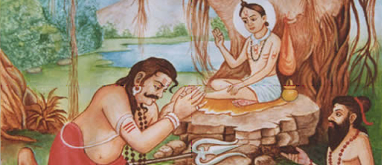 About 200 meters away a Youth with loin-cloth was spreading his deer-hyde on a raised platform around a huge tree. The fury of the winter-wind had silenced all the sounds. The Mahant just rushed to that Boy, Who seemed to be in His adolescence. He caught the young Boy with his hand and said: "Come on, good Boy. This is the place for tiger to sit at night, not for men. There is dense jungle all...
