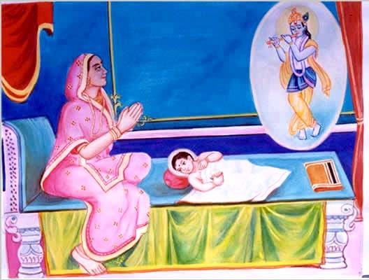 The newly born child presented a darshan of his divine form to his parents. Dharmdev and Bhaktimata saw, in their child, the most beautiful form of child Krishna (Bal Krishna). They prayed Bal Krishna with great devotion.